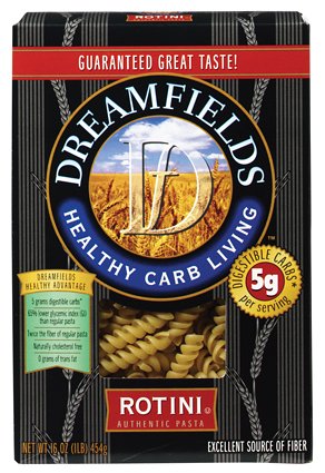 Healthy Rotini pasta. Just one bite of Dreamfields pasta with your favorite spaghetti sauce will convince you that pasta is indeed back in your menu. Unlike other healthy pastas, Dreamfields gets very high marks from its customers for incredible taste and texture that's almost like the real thing! A typical 2-oz serving of regular pasta is an astounding 42g carbs, but Dreamfields pasta has only 5g digestible carbs. Astound your friends and family with this "diet" pasta that will have them begging for more. Dreamfields Pasta is the perfect way to eat healthy and manage your diet and family nutrition. Dreamfields has five grams of digestible carbs, is naturally cholesterol free, and saturated fat-free and contains zero grams of trans fat. Dreamfields helps limit by 65% the rise in blood glucose levels that normally occur after eating ordinary pasta. This low glycemic index for Dreamfields Pasta makes it perfect for many people with Diabetes. Kids love the taste of Dreamfields so everyone in your family will love it.